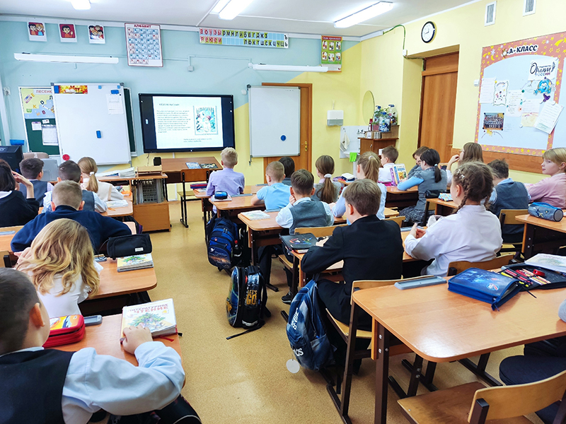 С учениками 4-го класса школы № 73 библиотекарь провел занятие по творчеству И.С. Тургенева, 205-летие которого отмечается в ноябре этого года.