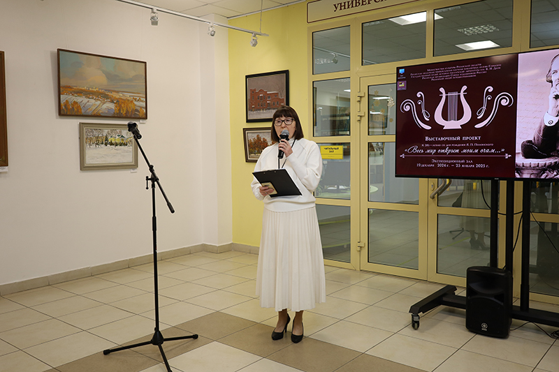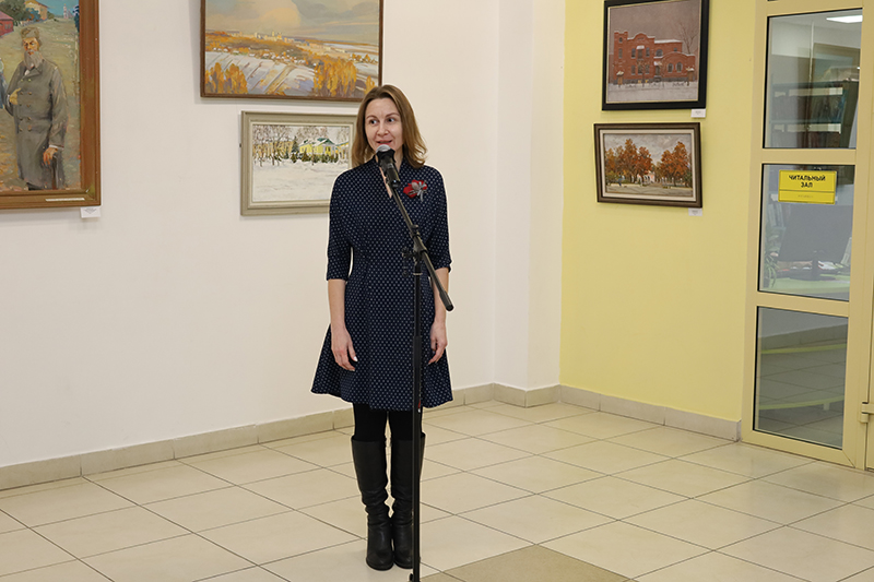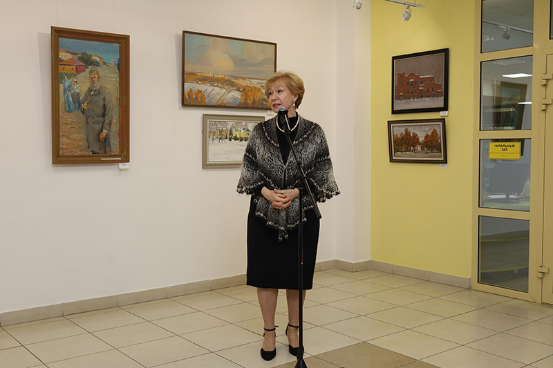 Наталья Николаевна Гришина, директор Рязанской областной универсальной научной библиотеки имени Горького, председатель Общественной палаты Рязанской области, заслуженный работник культуры Российской Федерации, почетный гражданин Рязанской области, почетный работник культуры Российской Федерации, в своем выступлении рассказала, что, готовясь к выставочному проекту, автор концепции выставки Вера Анатольевна Буковская и куратор выставки Марина Алексеевна Абрамова провели колоссальную работу по сбору информации и материалов для создания данной экспозиции.