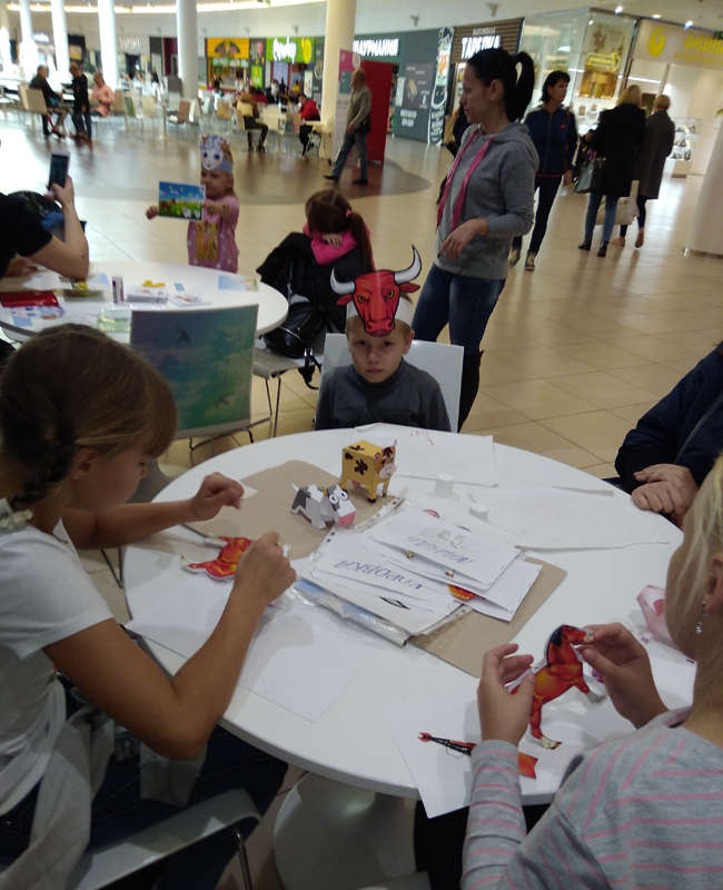 Во время мастер-класса наши гости совершили виртуальное путешествие на веселую ферму. Дети и их родители с энтузиазмом изготавливали из бумаги объемные фигурки коров, лошадок, поросят и овечек. А самые младшие участники весело проводили время, разукрашивая забавных животных и складывая тематические картинки из пазлов.