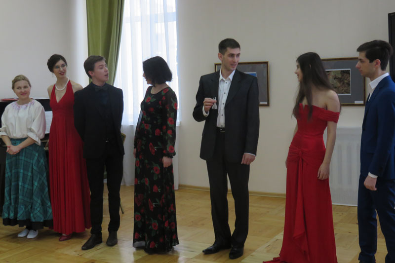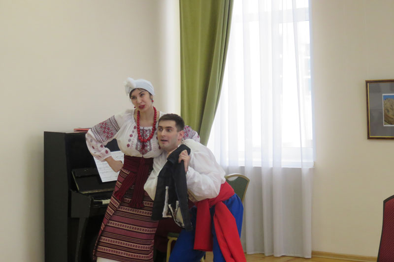 Первым номером концерта стала шуточная мини-опера отечественного композитора Р. Бойко по мотивам известной басни Крылова «Квартет». Юмористическим был и дуэт Одарки и Прокопа из оперетты «Сватанье на Гончаровке» в исполнении студентов Олега Воронина и Вероники Гамарко.