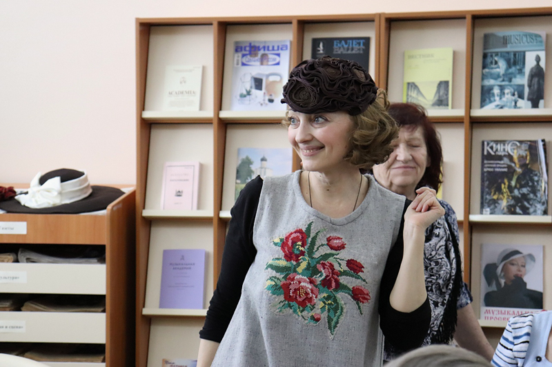В Центре литературы по искусству можно было познакомиться с работами рязанских рукодельниц, изготовленными в различных техниках: изделиями из кожи, вышивкой, вязанием, лоскутным шитьем. Татьяна Лазарева, почетный гость конкурса портных-любителей «Весеннее вдохновение» и член жюри, художник-дизайнер по текстилю, психолог и культуролог, провела мастер-класс «Делаем креативные шляпки из ничего». Татьяна Александровна – участник и дипломант множества российских и международных выставок («Лоскутная мозаика России» в Иваново, «Лоскутный стиль» в С.-Петербурге, «Русский костюм на рубеже эпох» в Ярославле). Среди подарков участникам была и ее книга «Рукодельные чудеса» с автографом и пожеланиями.