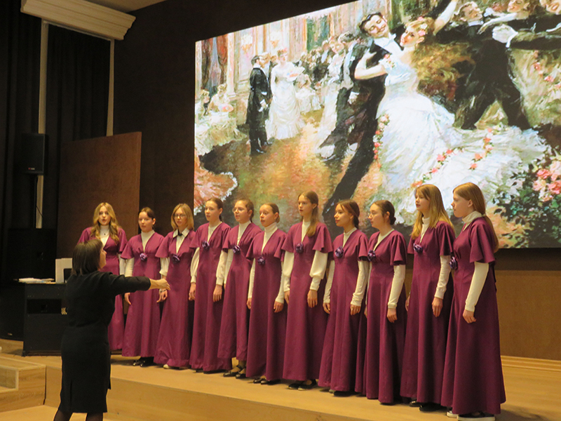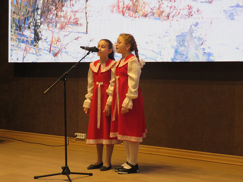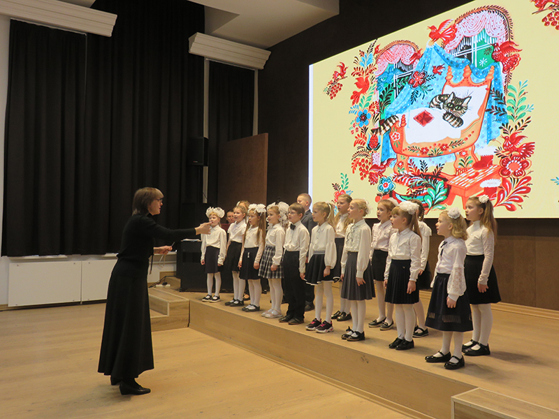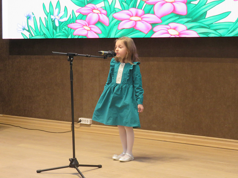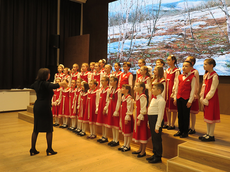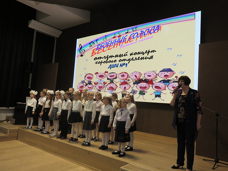Концерт открыло выступление хора первого класса, исполнившего песни С. Долгушина «Что такое музыка», И. Фроловой «Самая любимая», Я. Дубравина «Задорные чижи» и «Пойте вместе с нами», А. Ростовской «У кота» (из цикла «Три хора на народные песни») и другие. В исполнении хора «Капель» прозвучали песни Р. Глиэра «Сияет солнце…», Я. Дубравина «Всюду музыка живет», хор В. Моцарта «Откуда приятный и нежный тот звон» из оперы «Волшебная флейта». Ансамбль младших классов исполнил русскую народную песню «На горе-то калина». Хор «Элегия» исполнил песни С. Халаимова «Разноцветный мир детства», А. Аренского «Тихо все средь чарующей ночи», Я. Дубравина «Вальс» и «Нам нравятся каникулы», русскую народную песню «Пойду ль я, выйду ль я». И, конечно, программу украсили замечательные сольные номера учащихся школы, подаривших публике частичку своей светлой души. Это Настя Шатохина, Кира Бучнева, Вика Паршина, Екатерина Пименова, Анастасия Зорина, Савва Сальников, София Бирюкова, Карина Айрапетян.