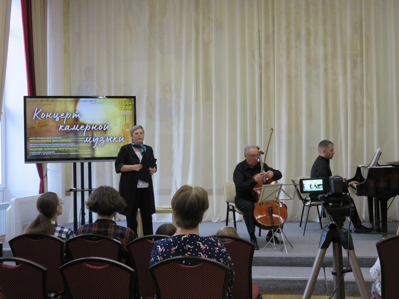 В библиотеке имени Горького состоялся концерт камерной музыки для виолончели и фортепиано в исполнении заслуженного деятеля искусств республики Куба, лауреата международных конкурсов Германа Васильевича Павлова и лауреата всероссийских и международных конкурсов, дипломанта Российской Гильдии пианистов-концертмейстеров Василия Сергеевича Морозова. Ведущая – преподаватель РМК им. Г. и А. Пироговых Ирина Нестерова.