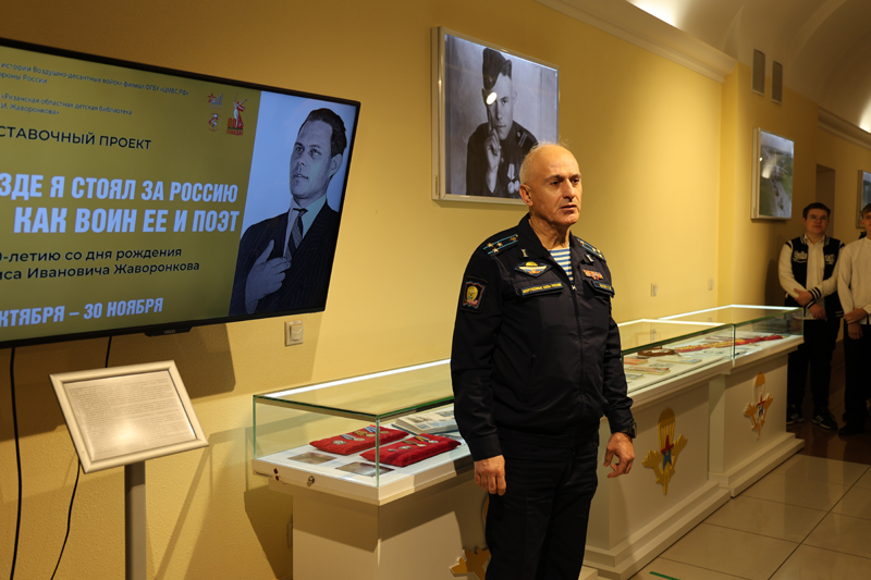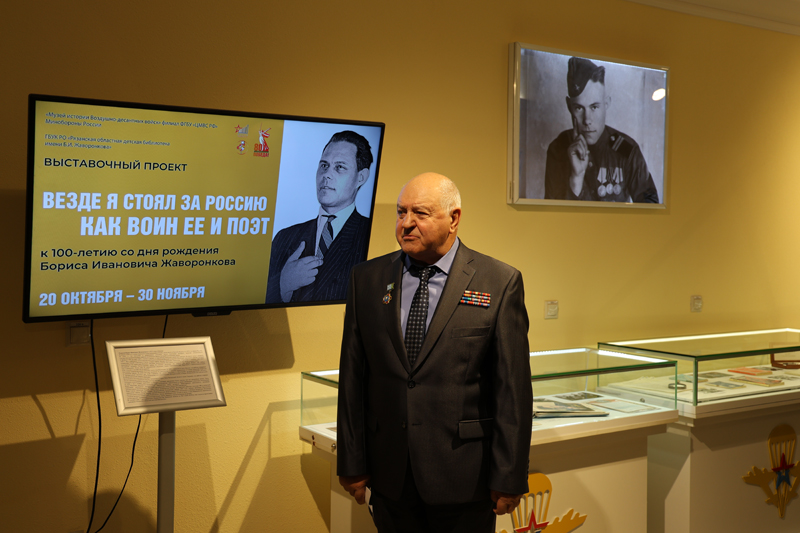 20 октября в Музее истории Воздушно-десантных войск состоялось открытие выставки «Везде я стоял за Россию как воин ее и поэт». Событие приурочено к 80-летию Великой Победы, 95-летию образования Воздушно-десантных войск и 100-летию со дня рождения Бориса Ивановича Жаворонкова, рязанского писателя и журналиста, лауреата литературных премий, участника Великой Отечественной войны, почетного гражданина города Рязани.