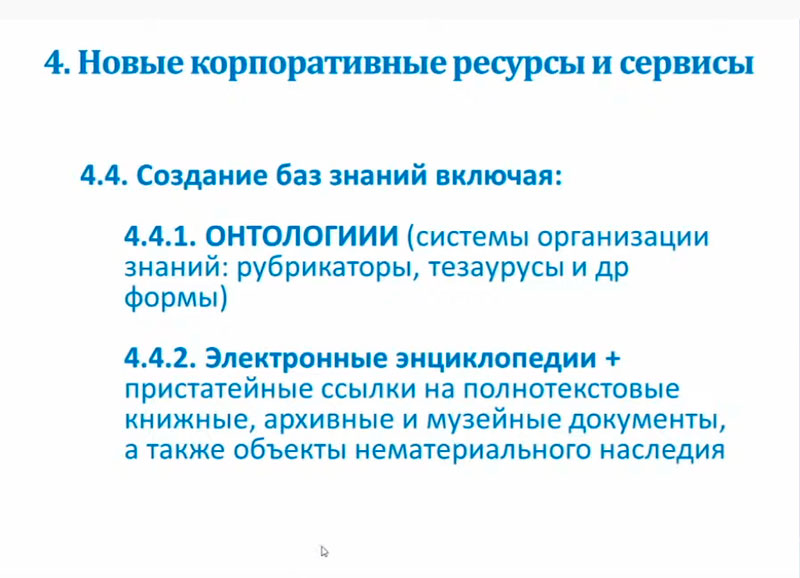 Директор Центральной научной медицинской библиотеки, генеральный директор Центра «ЛИБНЕТ» Борис Родионович Логинов представил задачи библиотек и пути их реализации. Он отметил, что корпоративные проекты – это объединение усилий для наиболее эффективного достижения целей. Главные задачи у всех библиотек общие – снижение затрат на библиотечные процессы: комплектование, каталогизацию, обслуживание пользователей. Он уделил особое внимание авторитетному контролю и работе со связанными данными, интеграции в единый каталог библиотечных, архивных и музейных данных, обеспечению удаленного доступа ко всем документам национального библиотечного фонда, технологии электронного абонемента. Особое внимание Борис Родионович уделил краеведческой информации и созданию электронных энциклопедий.