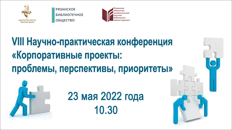 23 мая состоялась VIII Научно-практическая конференция «Корпоративные проекты: проблемы, перспективы, приоритеты». В ней приняли участие специалисты из государственных и муниципальных библиотек Рязанской области, библиотек средних профессиональных и высших учебных заведений Рязанской области, музеев города Рязани.