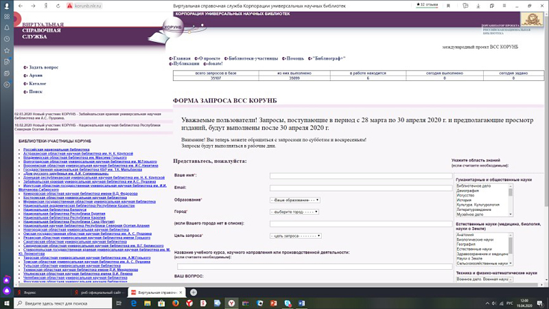 Всем, кто учится и занимается научной работой, напоминаем о виртуальной справочной службе Корпорации универсальных научных библиотек (КОРУНБ).