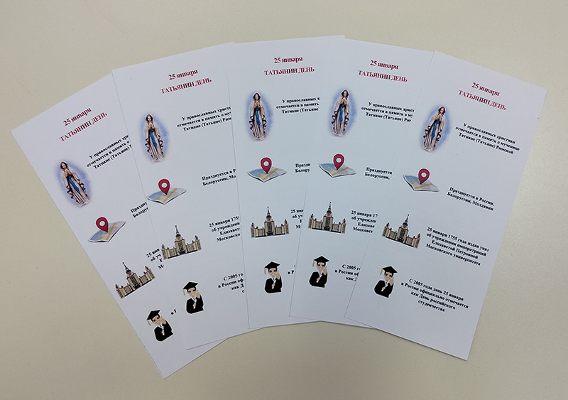 В ходе акции сотрудники библиотеки раздали горожанам книжные закладки с информацией о празднике. Участники акции познакомились с историей празднования Татьяниного дня и узнали об обычаях и традициях российского студенчества.