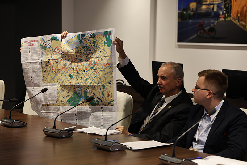 Краевед, член Рязанского отделения Всероссийской общественной организации ветеранов «Боевое братство» Арсен Валентинович Бабурин рассказал о своем проекте по изготовлению 3D-макетов утраченных православных храмов г. Рязани, заметив, что в годы Великой Отечественной войны многие бывшие храмы были наблюдательными пунктами при налетах вражеской авиации. Большой интерес вызвали представленные им карты обороны Рязани, которые 9 мая этого года были переданы во все школы города.