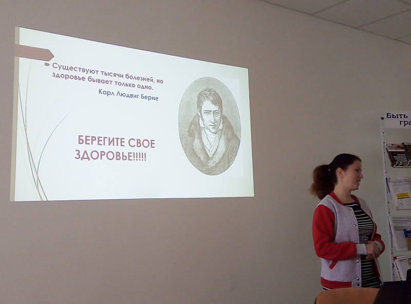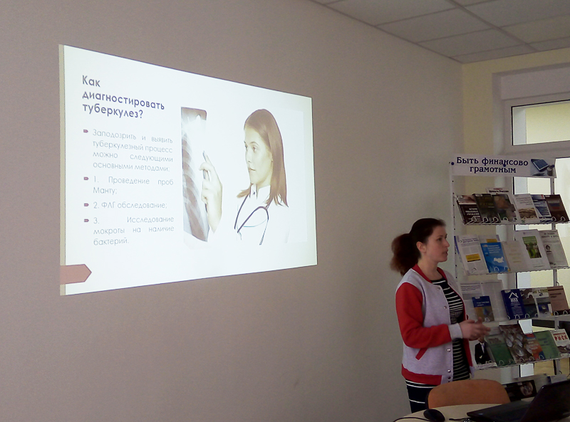 В преддверии Всемирного дня борьбы с туберкулезом в библиотеке имени Горького прошла лекция «Профилактика туберкулеза». Ее провела региональный координатор всероссийского общественного движения «Волонтеры-медики» Валентина Николаевна Бутримова.