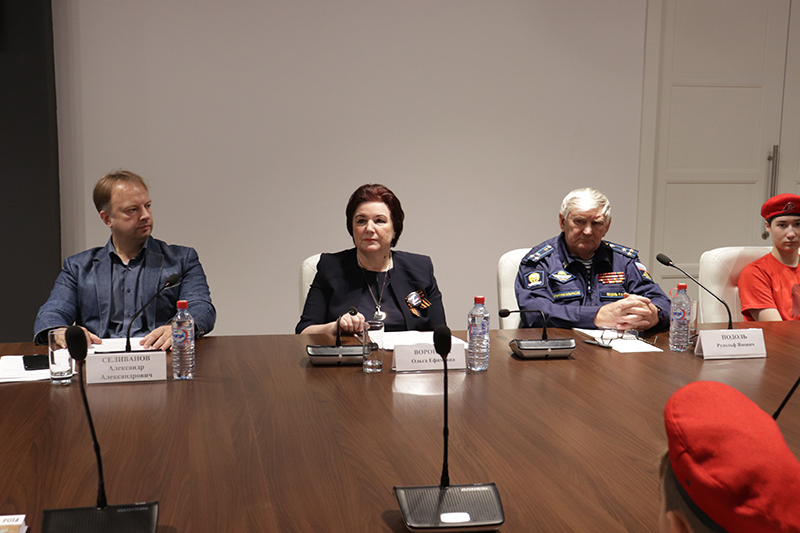 Председатель Общественной палаты Рязанской области, директор Рязанской областной универсальной научной библиотеки имени Горького, заслуженный работник культуры РФ Наталья Николаевна Гришина подчеркнула роль региональных библиотек не только как пункта сбора гуманитарной помощи для участников СВО, но и как «точки сборки» молодежных патриотических проектов. Член Комиссии по вопросам развития культуры и сохранению духовного наследия Общественной палаты Российской Федерации, заместитель председателя Общественной палаты Рязанской области, член научного совета Российского военно-исторического общества, профессор Рязанского государственного университета имени С.А. Есенина Ольга Ефимовна Воронова, обращаясь к юнармейцам, выступила с инициативой создания на базе Горьковки клуба патриотической молодежи.