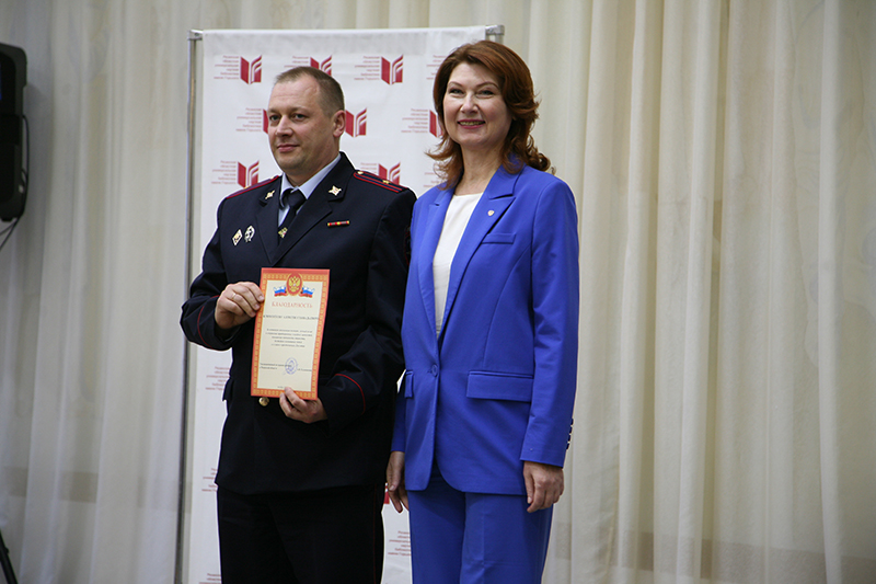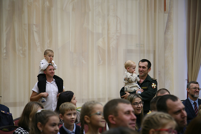 Праздник собрал мужчин разных профессий. В зале присутствовали папы, несущие службу в силовых структурах. Всех мужчин поздравила и вручила благодарственные письма Уполномоченный по правам ребенка в Рязанской области Анжелика Владимировна Евдокимова.