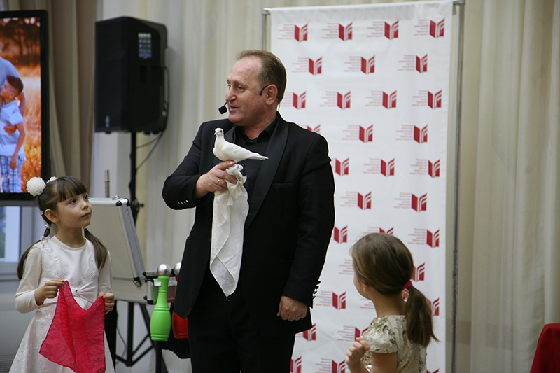 С восторгом приняли и дети, и взрослые подарок – выступление Олега Мельникова и его сына Андрея. Волшебство номеров фокусника вызвало шквал оваций.