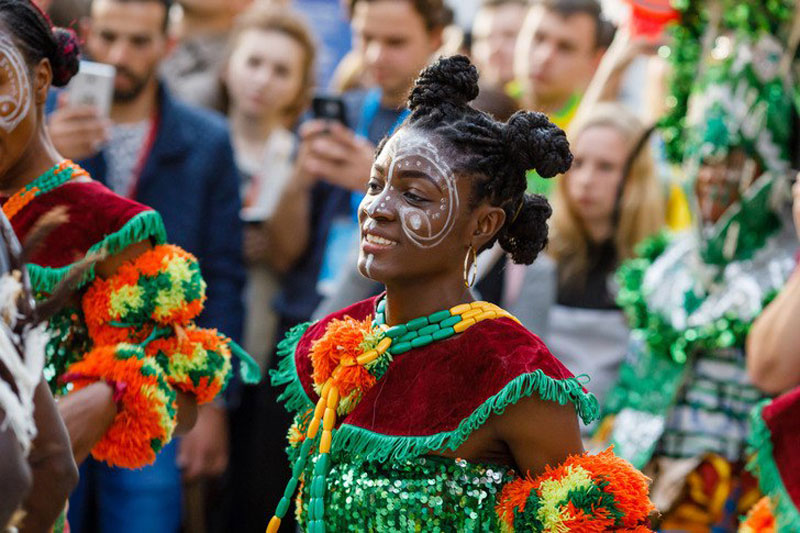 Молодой человек по имени Сэмми из Нигерии, который изъяснялся на английском языке только строчками из песен, был первым, кто сказал «Привет, как дела?» по-русски. Он в Россию приехал в первый раз. Запомнилась его улыбка… И он единственный из новых знакомых сказал, что у него не было стереотипного представления о том, что Россия – это холодная страна, где по улицам ходят медведи, где угрюмые люди в шапках-ушанках играют на балалайках. Хотя многие до сих пор представляют нашу страну именно такой. Но и у русской молодежи тоже много стереотипов в отношении других стран. Африканские делегации, кстати, очень часто собирались группами, поднимали флаги, кричали что-то. Это сперва очень пугало, но потом ты понимаешь, что все мирно.