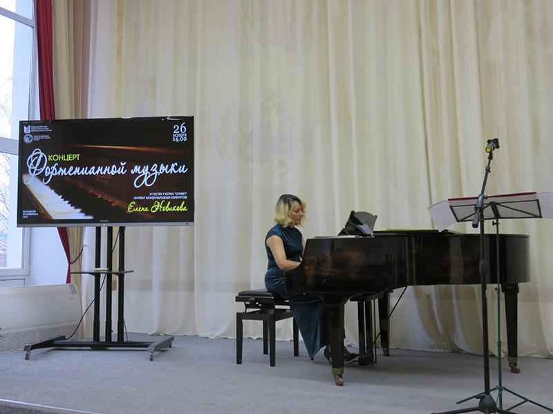 Елена Новикова представила любимую классику, шедевры русской и зарубежной музыки. Прозвучали произведения Петра Чайковского «Размышление», Рейнгольда Глиэра «Вальс» из балета «Медный всадник» (в обработке Д. Прицкера), Александра Алябьева - Ференца Листа «Соловей», Джоаккино Россини «Ария Фигаро» из оперы «Севильский цирюльник», (в концертной обработке Г. Гинзбурга), Петра Чайковского «Ноябрь» из цикла «Времена года», Ференца Листа «Этюд» («Охота»).