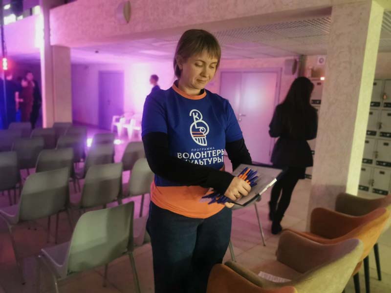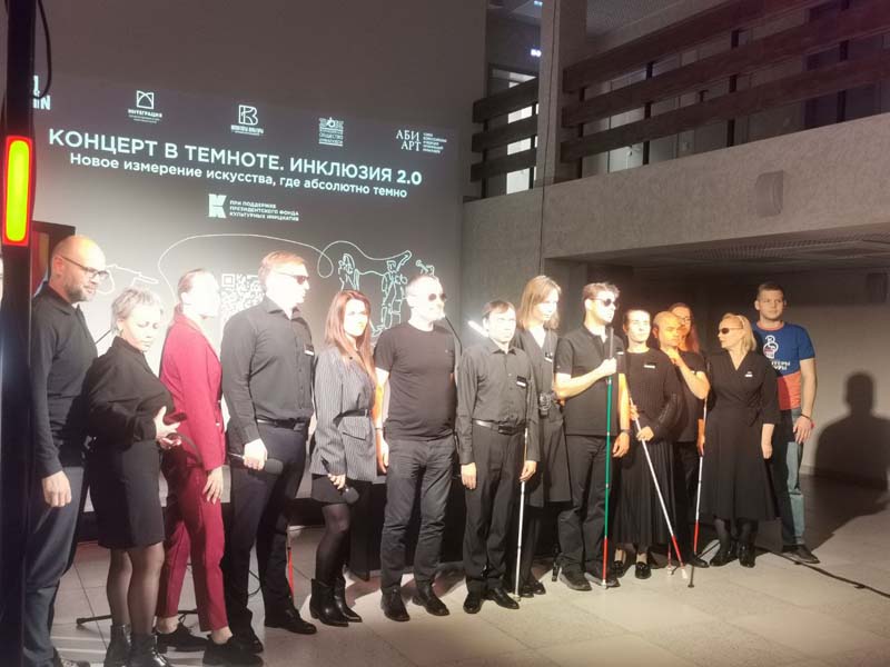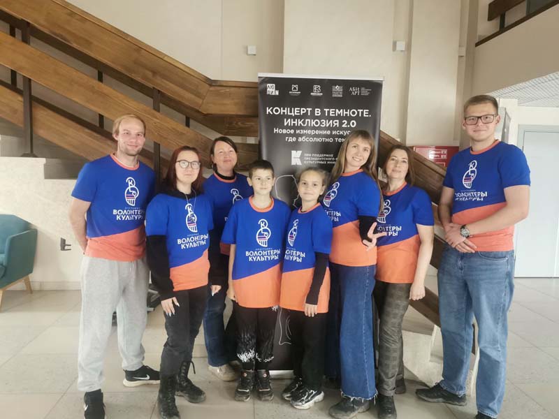 В рамках проекта «Концерт в темноте. Инклюзия 2.0» волонтеры оказывали помощь в ориентации в затемненном пространстве, обеспечивая комфортное и безопасное пребывание зрителей.