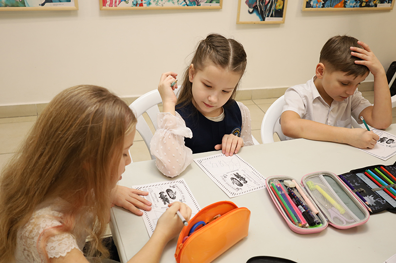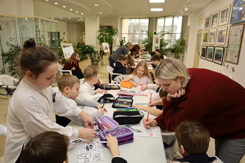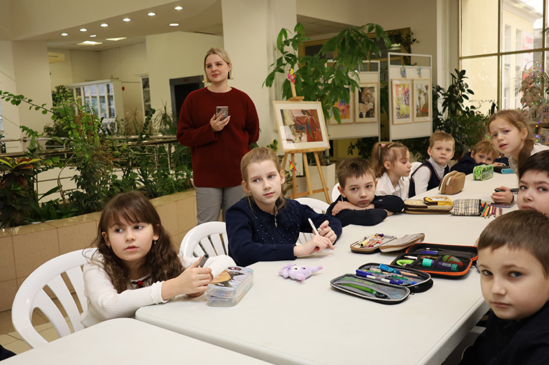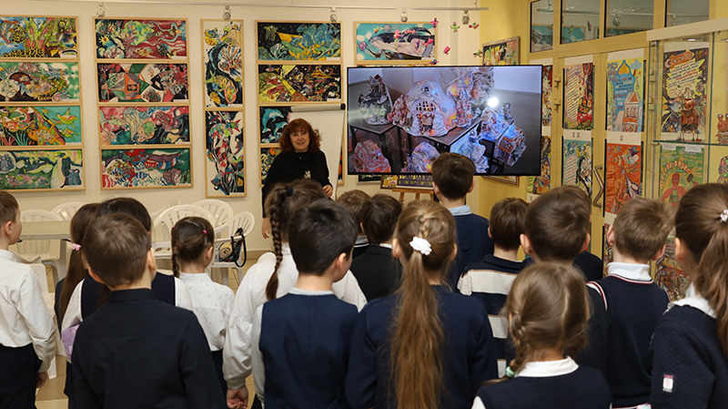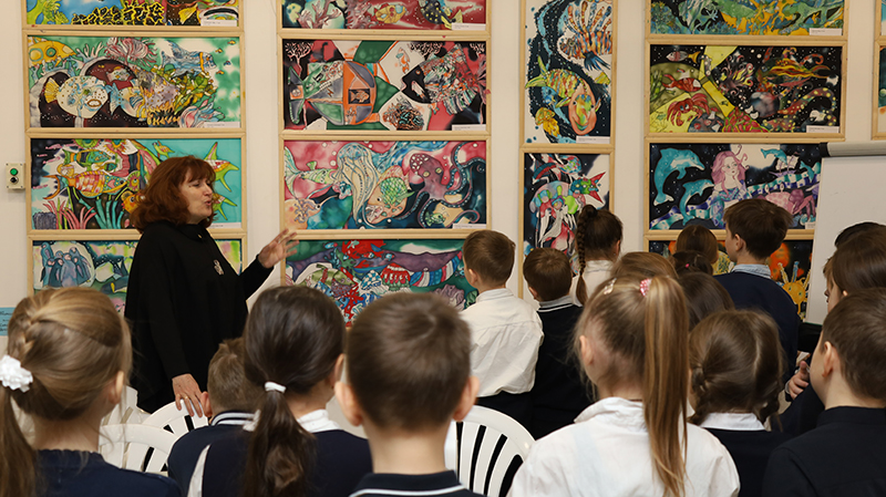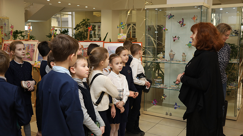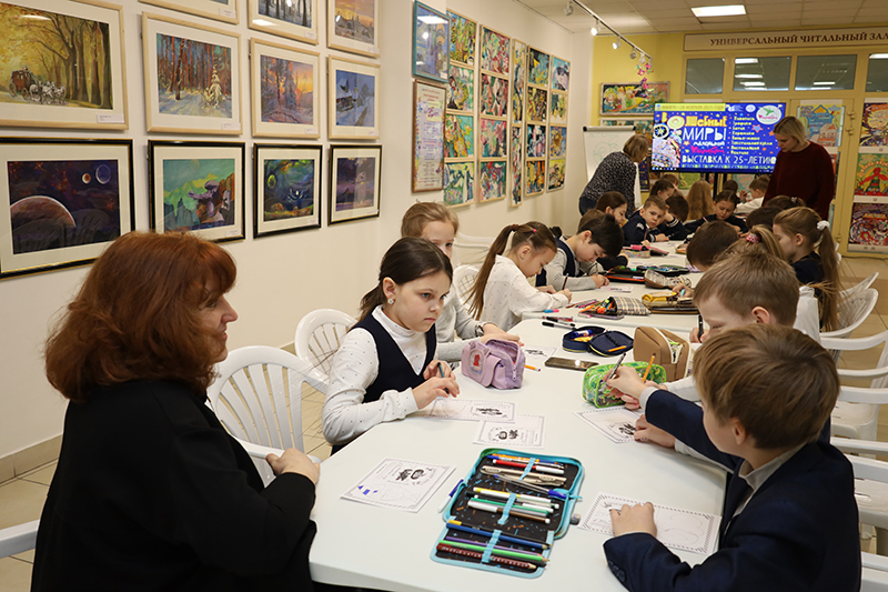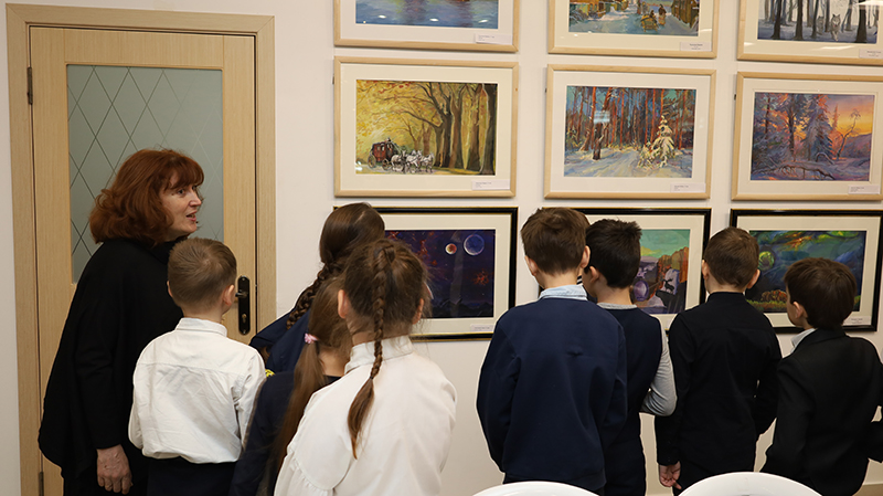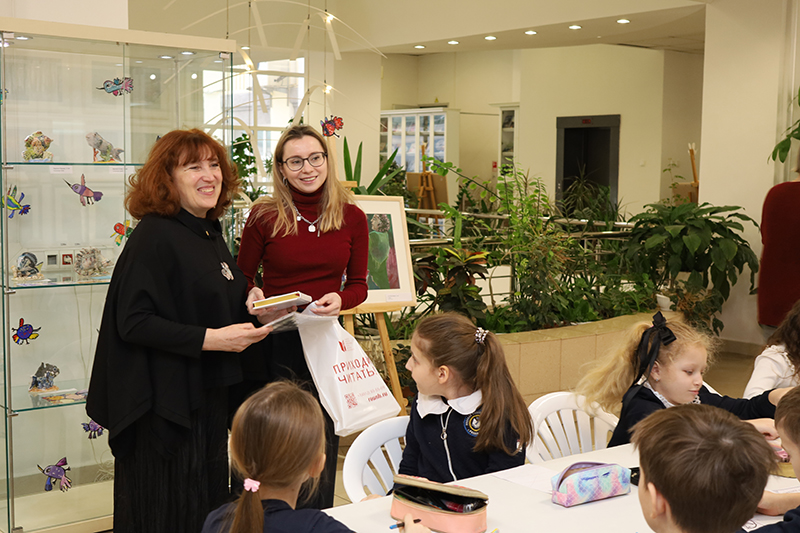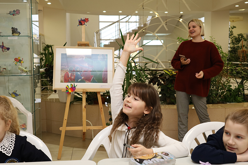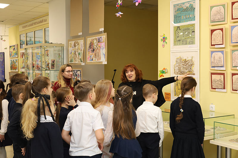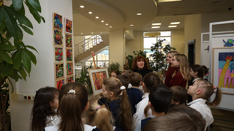 Людмила Львовна Пронкина провела для ребят экскурсию по выставке, в ходе которой дети погрузились в волшебные миры творческих академий. Юные художники побывали в академии смелости и экстрима «Подводопогружение», академии смелого туриста «Космоград», академии натуралиста «Мушкабланка», академии красоты и невиданных чувств – городе художников «Ухтынск», академии игры «Кукляндия», академии любопытных «Тудасюдачинск» и академии радости «Клоундон». «Читайте, мечтайте, путешествуйте, мастерите и будьте счастливы. И обязательно дарите свое счастье всему миру», – пожелала ребятам Людмила Львовна.