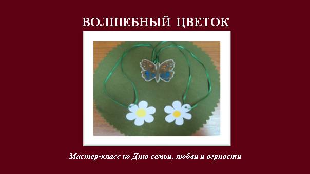 Символом праздника Дня семьи, любви и верности является ромашка. В этот день принято говорить друг другу добрые слова и дарить подарки. Предлагаем мальчишкам и девчонкам сделать своими руками кулон-оберег в виде ромашки и подарить родителям, чтобы семья жила в любви, мире и радости.