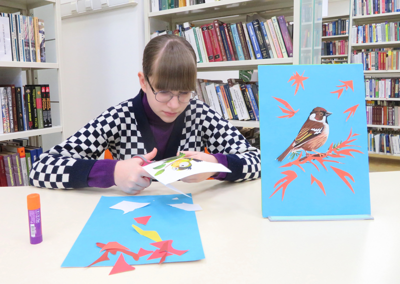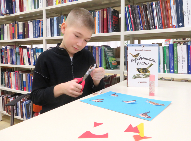 Участники детского клуба выходного дня «Домовёнок» продолжили знакомство с интересными рассказами о жизни птиц России. На апрельском занятии клуба дети встретились с героями книги Николая Сладкова «Воробьишкина весна» и изготовили под руководством библиотекаря декоративное панно с изображением веселых и задиристых воробьев.