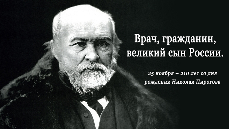 25 ноября исполняется 210 лет со дня рождения гениального врача, «отца русской хирургии» Николая Ивановича Пирогова, основателя военно-полевой хирургии, одного из основоположников хирургии как научной медицинской дисциплины.