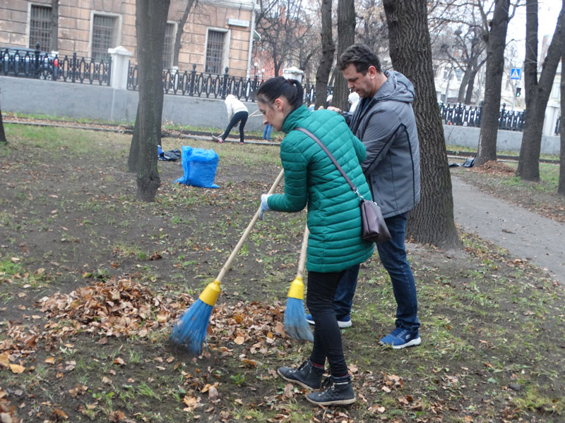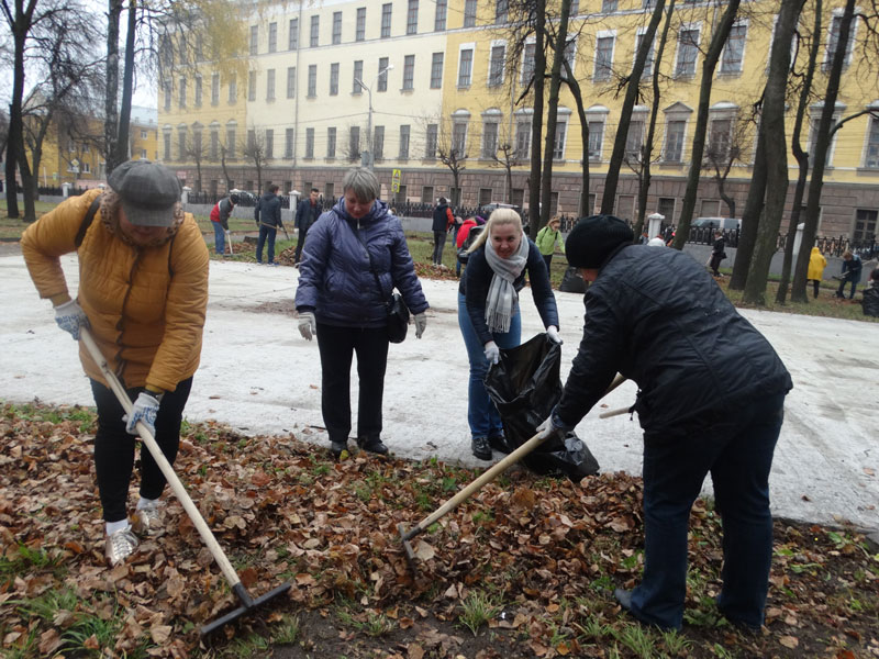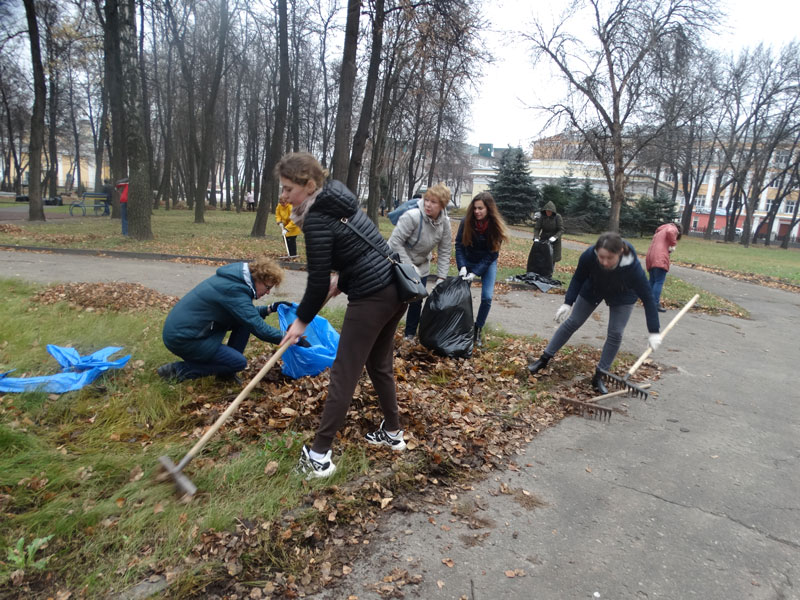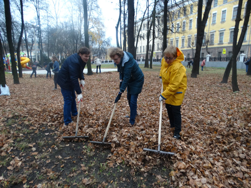 Была проделана большая работа – убрали листву и сухие ветви, подмели дорожки. Коллектив библиотеки работал быстро и дружно.
