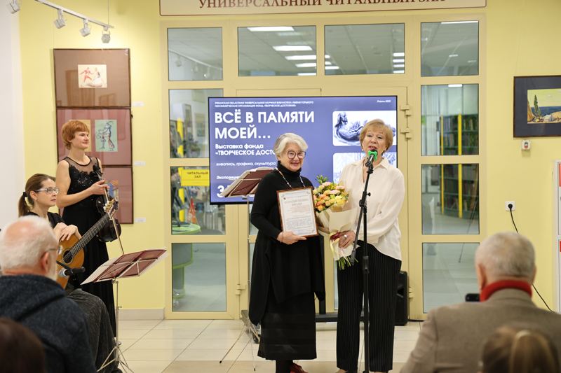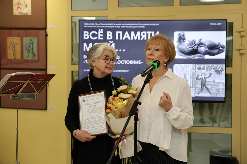 Наталья Николаевна вручила благодарственное письмо Р.А. Лысениной от Рязанской областной библиотеки имени Горького и подчеркнула особое значение миссии, которую добровольно взяла на себя Раиса Алексеевна: «Сохранение культурного достояния – произведений художников, писателей, артистов, поэтов, ушедших из жизни и не оставивших наследников, – важнейшая обязанность каждого поколения, долг не только перед культурой и памятью, но и перед потомками».