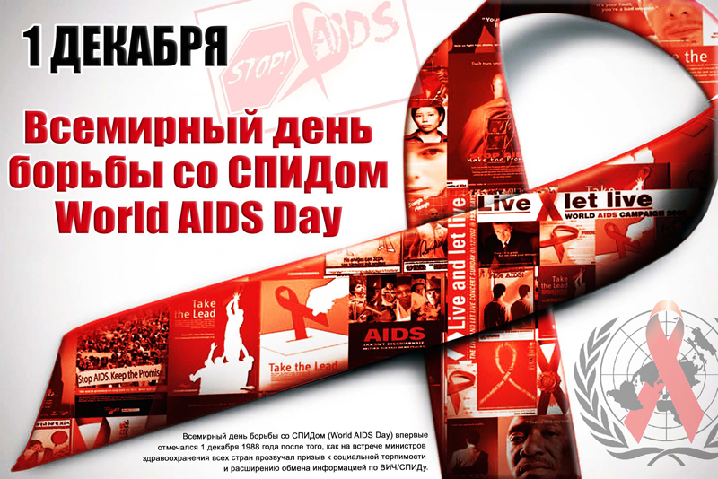 Символом международного дня борьбы со СПИДом является красная ленточка, свернутая определенным образом и отображающая букву V, олицетворяющая сострадание, поддержку и надежду на будущее без СПИДа.