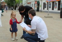 Организаторы совершили книжный забег по улице Почтовой, во время которого задавали прохожим вопросы о литературе и приглашали их в главную библиотеку региона.