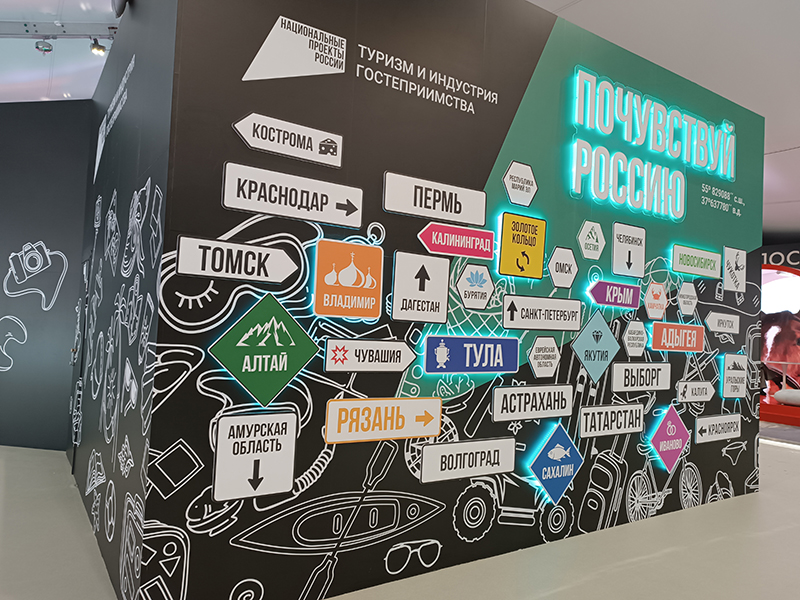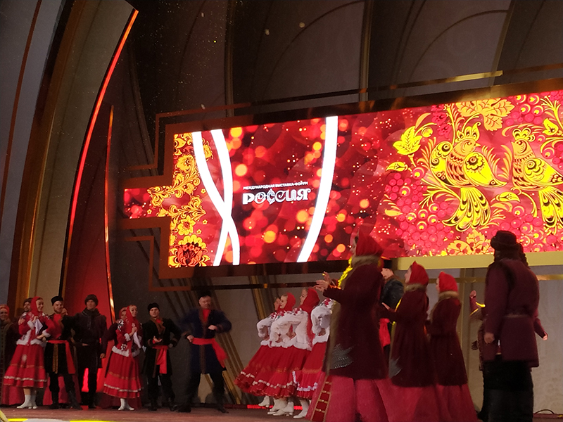 С начала ноября здесь работает Международная выставка-форум «Россия». На полгода территория ВДНХ является масштабной проекцией нашей страны – здесь представлены все субъекты Российской Федерации, крупнейшие корпорации, федеральные структуры, промышленные объединения, общественные организации. На выставке представлены 67 объектов площадью 265 тысяч квадратных метров. Главные достижения страны собраны в 131 экспозицию.