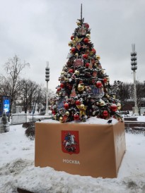 Все посетители выставки имеют возможность полюбоваться аллеей из 89 необыкновенно украшенных елок, для каждого региона они оформлены по-своему. Конечно же, самой красивой нам показалась елка Рязанской области.