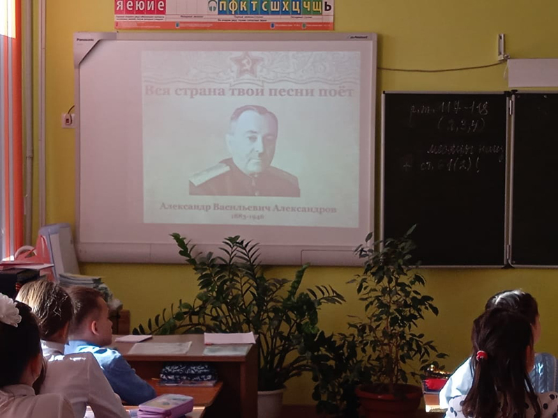 Мальчишки и девчонки даже не подозревали, что гимн России, который они исполняют каждую неделю на классных часах «Разговоры о важном», положен на музыку нашего земляка, уроженца села Плахино Захаровского района Рязанской губернии. Ребята узнали, какими талантами обладал маленький Саша Александров, как учился сначала в Санкт-Петербурге, а затем в Москве, какие музыкальные произведения сочинил кроме гимна.