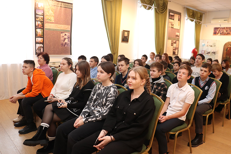 Ребята узнали также о том, что нашему земляку принадлежит авторство знаменитых песен «Священная война», «Несокрушимая и легендарная», «Бейте с неба, самолеты». Особый интерес вызвала история написания гимна СССР и Российской Федерации, а также архивные кадры выступлений ансамбля.