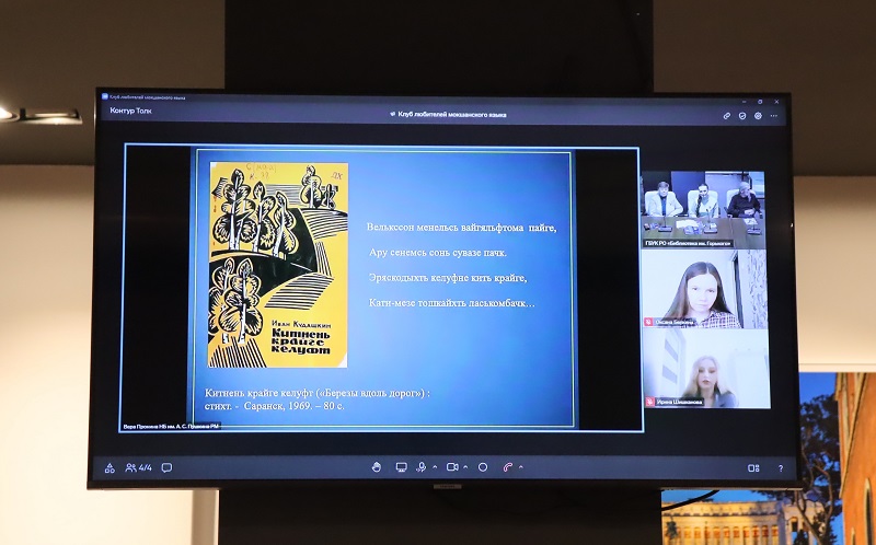 Встреча любителей мокшанского языка началась с выступления сотрудницы Национальной библиотеки имени А.С. Пушкина Республики Мордовия Веры Ивановны Прониной. Вера Ивановна представила презентацию, посвященную творчеству заслуженного поэта Республики Мордовия Ивана Никитовича Кудашкина. Она познакомила участников встречи с жизнью и творчеством мордовского поэта, создававшего свои произведения на мокшанском языке. На встрече прозвучала песня, написанная на стихи поэта, в исполнении заслуженной певицы Республики Мордовия Галины Макшевой.