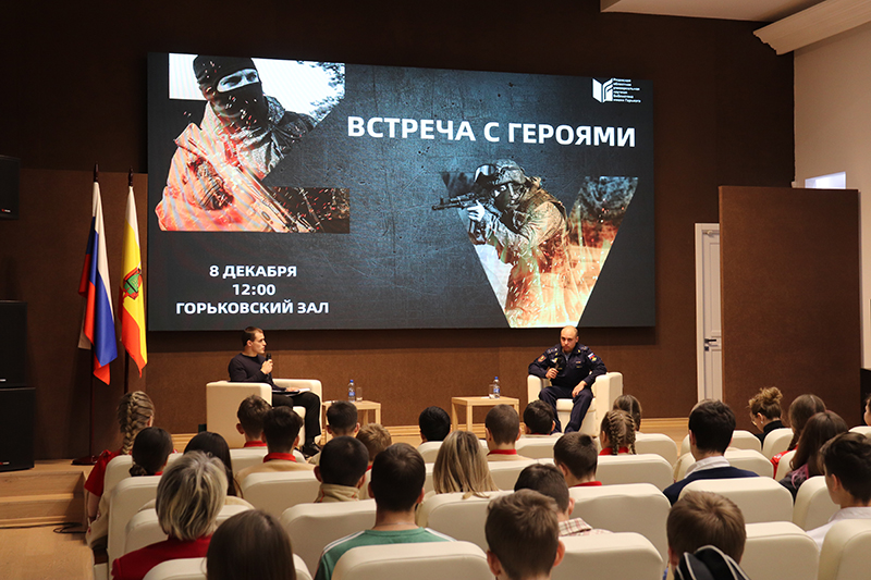 Накануне праздника в Рязанской областной универсальной научной библиотеке имени Горького состоялась патриотическая встреча студентов Академии права и управления ФСИН России, юнармейцев, школьников с участником специальной военной операции. Гость говорил о том, какие задачи стоят перед бойцами, о значении действий нашей армии для жителей новых регионов России. Рассказал об особенностях прохождения службы, о быте на передовой, моральной поддержке, подвигах сослуживцев, ответил на вопросы слушателей.