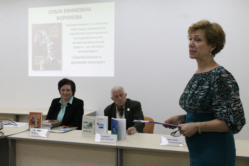 В Рязанской области в XXI веке появились сразу две литературные премии. В 2005 году в соответствии с Постановлением Рязанской областной Думы была учреждена премия имени С. А. Есенина в области литературы и искусства, а в 2008 году – ежегодная литературная премия имени Я.П. Полонского. Лауреаты премий стали главными героями творческой встречи. Доктор филологических наук О. Е. Воронова получила высокую награду в 2005 году за монографию «Сергей Есенин и русская духовная культура». Известный литературовед рассказала о том, как в творчестве С.А. Есенина прослеживается тема космоса. Это стало для присутствующих неожиданным открытием. Большой интерес вызвало сообщение Ольги Ефимовны о публикации произведений Есенина на арабском, китайском и японском языках.