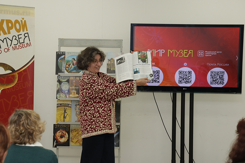 Открывая мероприятие, литературный редактор журнала «Мир Музея», корректор, координатор проекта «Музей для читающих», редактор сайта Валерия Ахметьева подчеркнула, что миссия журнала – изучение, сохранение и продвижение культурного наследия. На протяжении нескольких десятилетий журнал «Мир Музея» освещает жизнь музеев, рассказывает о новых выставках, публикует методические и справочные материалы в помощь музейному работнику. Журнал «Мир Музея» выходил с 1931 года под названием «Советский музей». В 1940-м издание журнала приостановилось на несколько десятилетий. И только в 1983 году Юрий Петрович Пищулин смог возобновить журнал «Советский музей», переименованный через десять лет в «Мир Музея». Юрий Петрович оставался главным редактором и вдохновителем журнала до 2014 года. Сегодня главный редактор журнала Алексей Юрьевич Пищулин продолжает дело своего отца.