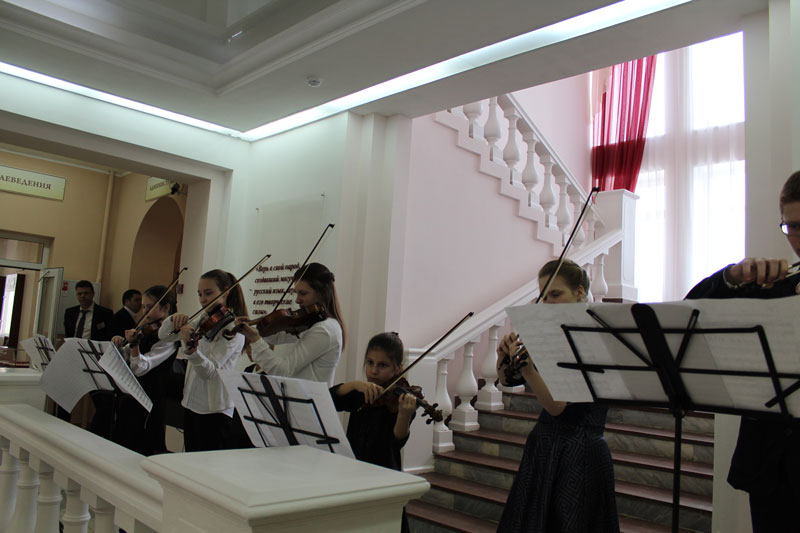 С подарком от Детской музыкальной школы №1 им. Е.Д. Аглинцевой выступил ансамбль скрипачей, который представил несколько музыкальных композиций.