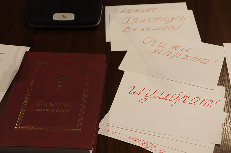 Настоятель Спасо-Преображенского Пронского мужского монастыря игумен Лука рассказал о Священномученике Мисаиле, который проповедовал Священное Писание мордовскому народу. Члены клуба прочли вслух отрывок из Евангелия от Иоанна на мокшанском языке.