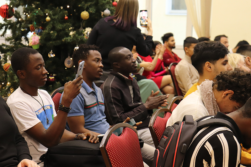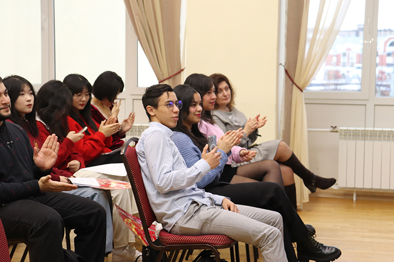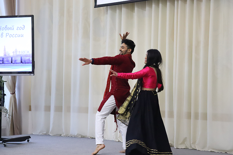 Участники праздника из Китая, Индии, Туниса, Марокко, Камеруна, Конго, Туркменистана, Узбекистана и Азербайджана приготовили для своих друзей-студентов творческие подарки: стихи русских и зарубежных классиков, песни, зажигательный танец и увлекательный рассказ о китайских новогодних традициях.