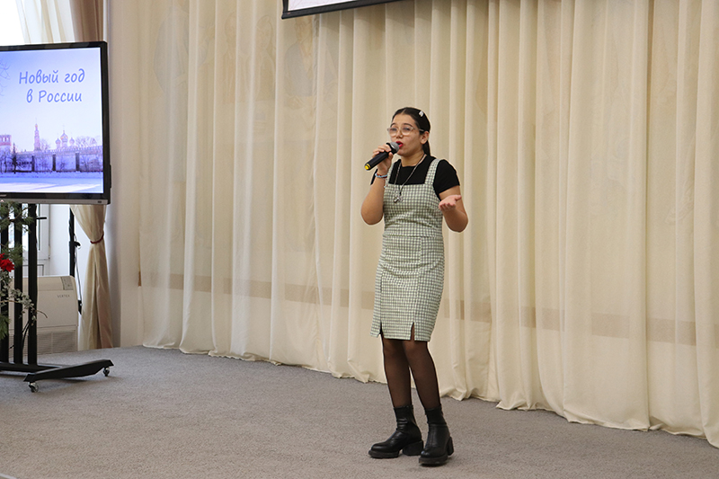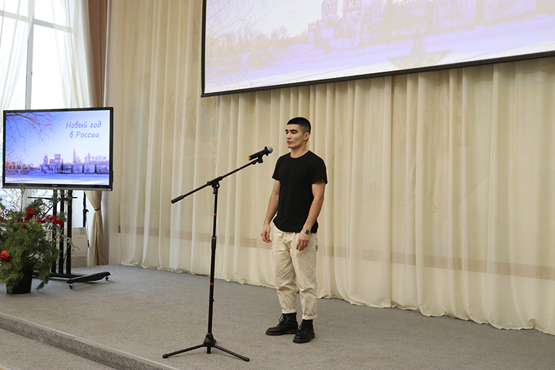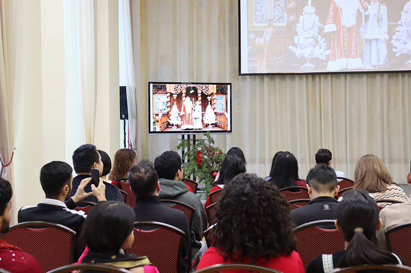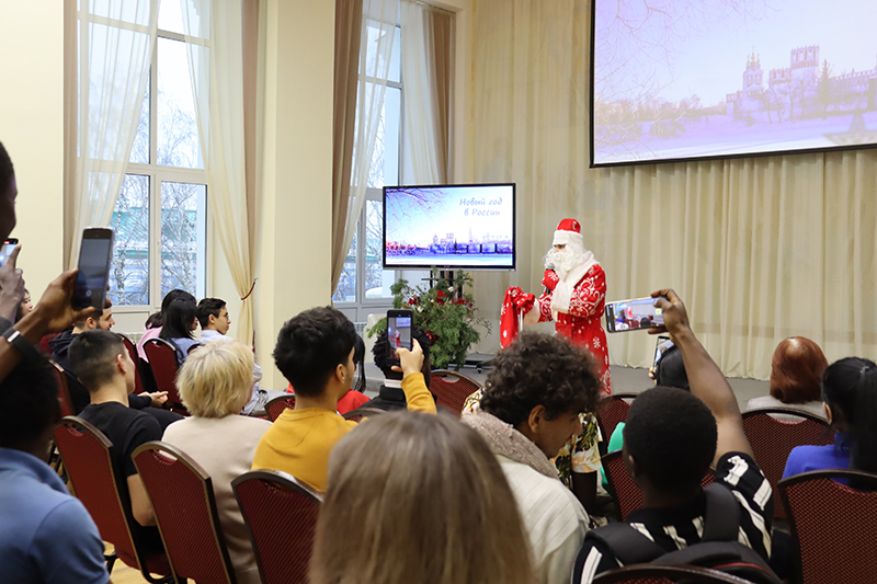 Зарубежные гости узнали об истории и традициях празднования Нового года в нашей стране, окунулись в чудесную атмосферу этого волшебного праздника. Студентам-иностранцам Рязанского государственного медицинского университета имени И.П. Павлова, Рязанского государственного агротехнологического университета имени П.А. Костычева, Института Конфуция Рязанского государственного университета имени С.А. Есенина, Рязанского медицинского колледжа и Рязанского станкостроительного колледжа рассказали о новогодних национальных обычаях разных народов нашей необъятной и прекрасной России.