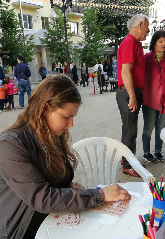 Для горожан работали анимационные, интерактивные и творческие площадки, были организованы квесты и другие развлечения. Наша библиотека представила конкурсы, посвященные Дню славянской письменности и культуры. Самые маленькие жители города с удовольствием раскрашивали древнерусские буквицы, взрослые разгадывали тематические кроссворды. Всем посетителям нашей площадки понравился конкурс, в котором нужно было собрать древнерусскую кириллицу. Желающие приняли участие в викторине «Что я знаю о славянской письменности?». Всех участников ждали приятные сюрпризы.