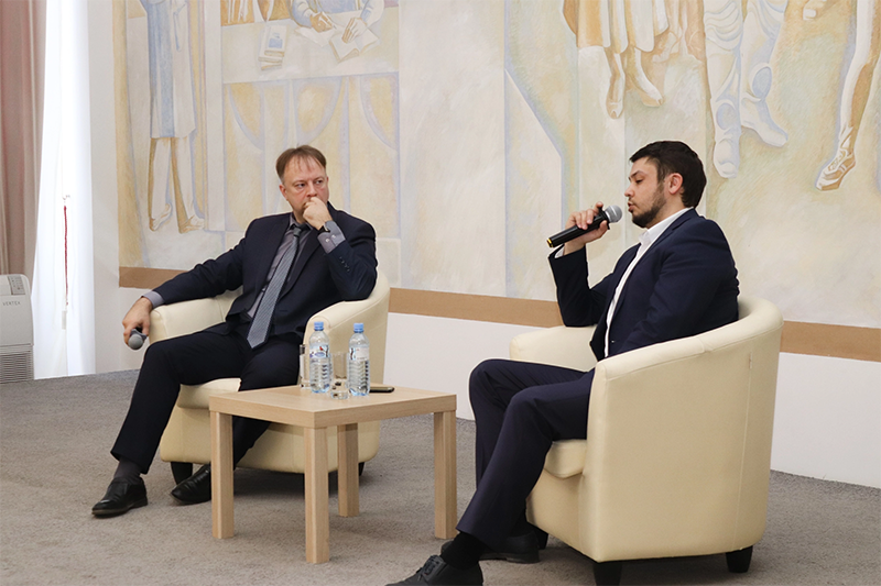 Насыщенная программа продолжилась встречей в формате «100 вопросов к эксперту», на которой главным действующим лицом стал Виталий Юрьевич Савельев, генеральный директор «Аврора роботикс», руководитель технопарка «Аврора», первый резидент ИНТЦ «Аэрокосмическая инновационная долина», выпускник РГРТУ им. Уткина. Слушатели узнали много нового о современных отечественных технологиях и смогли задать интересующие их вопросы.