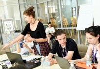 Вторая половина дня прошла в Рязанской областной универсальной научной библиотеке имени Горького, где состоялись мастер-классы, посвящённые монетизации творчества в рамках профильных направлений креативных индустрий: «Дизайн и фото», «Видео и звук», «Анимация». После мастер-классов ребята продолжили работу в группах над заданием командных соревнований «Креатон».