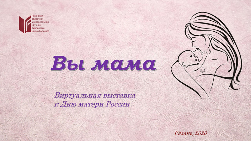 Материнство – одна из самых больших радостей в жизни женщины. Ему мы посвящаем нашу виртуальную выставку «Вы мама», которая расскажет об истории праздника, о защите прав матери и ребенка на уровне государства, познакомит с книгами по педагогическим, психологическим вопросам материнства и детства. А также с изданиями о здоровье матери и ребенка, где есть ответы на множество волнующих вопросов, которые возникают при беременности и с рождением малыша.