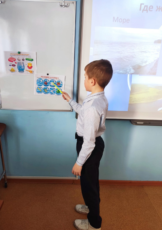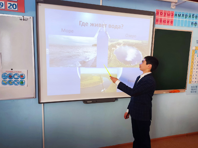 Ученики узнали, что такое круговорот воды в природе, познакомились с различными свойствами воды и льда, у них появились представления о физических явлениях таяния и замораживания. Занимательный рассказ сопровождался презентацией «Вода – источник жизни» и завершился познавательной игрой-викториной.