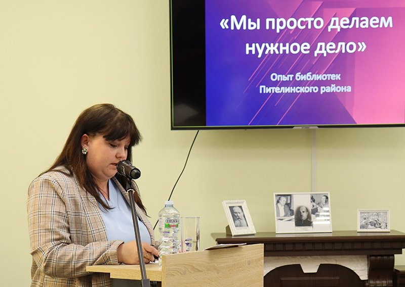 О работе библиотек и местного сообщества по поддержке участников СВО и их семей, о формировании у детей и молодежи чувства патриотизма, любви к своей Родине, гражданской ответственности рассказали Альбина Павловна Егорова, председатель Совета женщин г. Скопина, директор Центральной районной библиотеки имени Б.А. Можаева Пителинского муниципального района, и Наталия Ивановна Овинникова, директор Централизованной библиотечной системы Скопинского муниципального района.
