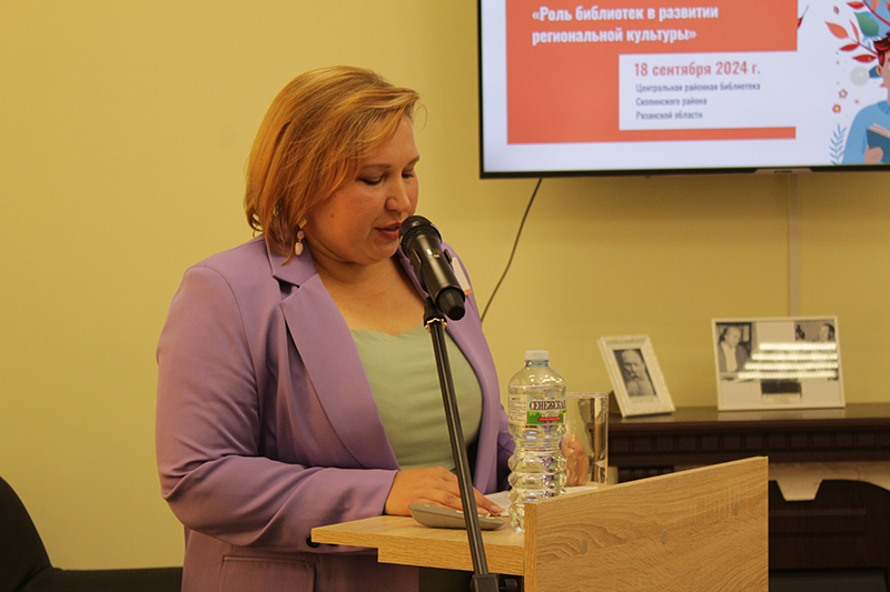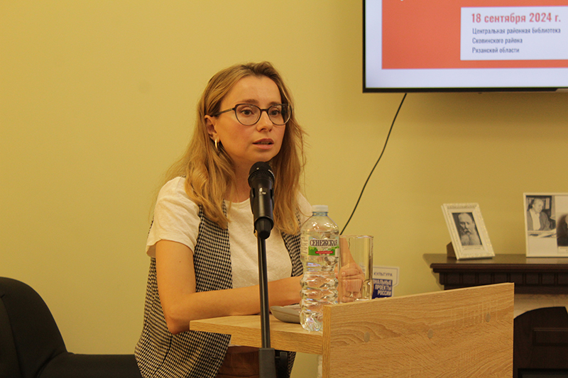 Ксения Александровна Чулкова, заместитель директора по социокультурной деятельности и связям с общественностью Рязанской областной универсальной научной библиотеки имени Горького, в своем выступлении обратила внимание на одно из приоритетных направлений реализации Стратегии государственной культурной политики на период до 2030 года – повышение социального статуса семьи как общественного института, обеспечивающего воспитание и передачу от поколений к поколению традиционных для российского народа духовно-нравственных ценностей. Рассказала о крупных масштабных мероприятиях и проектах, проводимых библиотекой имени Горького в текущем году.