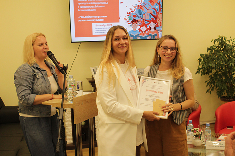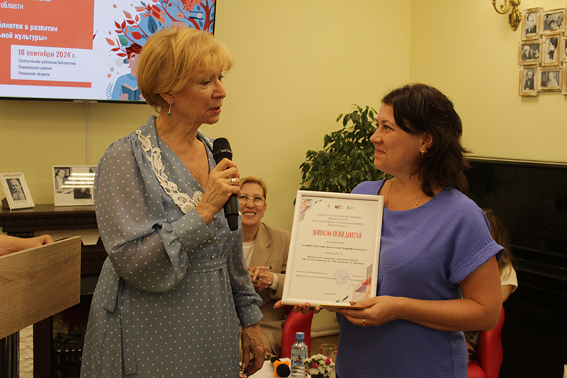 Надежда Сергеевна Выропаева, заведующая отделом организационно-методической и образовательной деятельности Рязанской областной универсальной научной библиотеки имени Горького, подвела итоги конкурса на лучшую реализацию программы «Пушкинская карта» среди государственных и муниципальных библиотек Рязанской области. По результатам конкурса победителями стали: в номинации «Лучший участник программы “Пушкинская карта”» – Центральная библиотека имени Л.А. Малюгина (г. Касимов); в номинации «Лучший информационный агент программы “Пушкинская карта”» – Центральная библиотека Александро-Невского муниципального района; в номинации «Лучший амбассадор (активист) “Пушкинской карты”» – Центральная районная межпоселенческая библиотека Касимовского муниципального района.