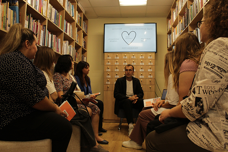 Марина Александровна Тябина, волонтер благотворительного фонда «Форпост», познакомила слушателей с работой фонда. Выразила слова благодарности всем, кто принимает участие в сборе помощи нашим бойцам, которые находятся в зоне специальной военной операции. Поделилась опытом проведения семейного фестиваля «Планета детства» для семей участников СВО, получившего поддержку министерства территориальной политики Рязанской области. Фестиваль был приурочен ко Дню знаний.