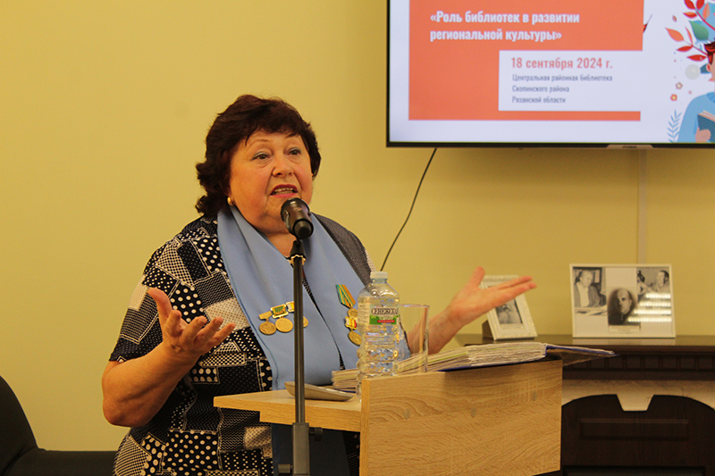 О ходе подготовки к празднованию 80-й годовщины Победы в Великой Отечественной войне 1941–1945 годов в библиотеках области, о Всероссийском проекте «Трудовая доблесть. Лица Победы», о Книгах Памяти малых населенных пунктов, о размещении информации на сайте «Книга Памяти Рязанской области» в своем выступлении говорила Светлана Алексеевна Винокурова, заместитель директора по развитию Рязанской областной универсальной научной библиотеки имени Горького, председатель Рязанского библиотечного общества, почетный работник культуры и искусства Рязанской области.